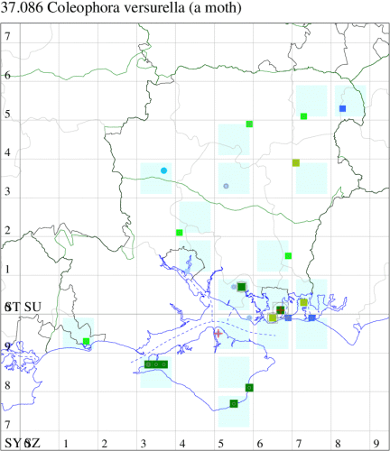 Local on saltmarshes, waste ground and farmland in England and Wales, as far north as Co. Durham, and the Isle of Man (MBGBI Vol 3). In Hampshire largely restricted to the south-east coast, but there are a few inland records identified through dissection that indicate it is very likely to be more widespread than records suggest. Certainly, detailed work on the Isle of Wight since 2020 has indicated that it is likely to bre relatively common and under-recorded. Wingspan 11-15 mm. Imago very similar to
