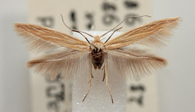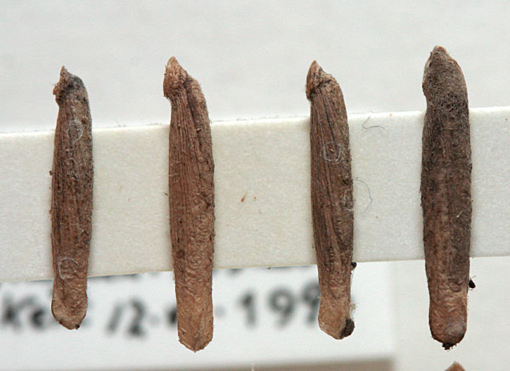 Endangered (proposed as a future Red Data Book species) on saltmarshes in the estuary of the River Thames, where it occurs in both Kent and Essex (MBGBI Vol 3). Not recorded in Hampshire or on the Isle of Wight to date. Wingspan 11.5-13.5 mm. Like many of the Coleophora, imagines are virtually impossible to identify without recourse to dissection, and the larvae, which live in cases of characteristic form and which can sometimes be found on the foodplant, may be easier to identify by comparison against a reference collection. Larva mines leaves of Sea Aster, living within a movable case.