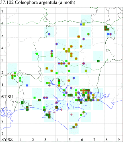 Common on waste ground and rough grassland, and by ditches and freshwater margins, throughout much of southern England, Wales and central Scotland. In south Hampshire, cases are common to abundant on yarrow, especially near the coast, but recorded less frequently in the north and on the Isle of Wight. Wingspan 9.5-13 mm. More frequently recorded in the larval stage, when the cases are fairly easy to find where they are present; the imago can be separated from several very similar Coleophora species only by dissection of the genitalia. Larva feeds on flowers and seedheads of Yarrow and Sneezewort, living within a movable case; case length 5-6 mm.
