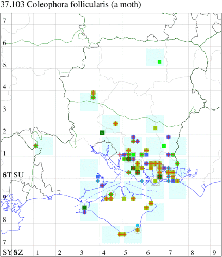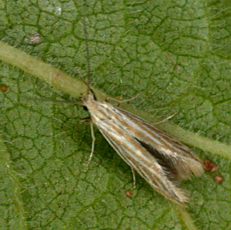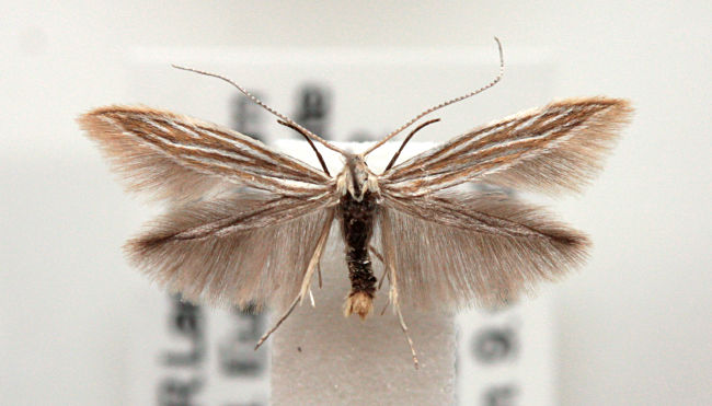 Coleophora, imagines are virtually impossible to identify without recourse to dissection, and the larvae, which live in cases of characteristic form and which can sometimes be found on the foodplant, may be easier to identify by comparison against a reference collection. Larva mines leaves of Hemp-agrimony, Common Fleabane and Ploughman's-spikenard, living within a movable case.