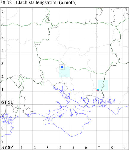 E. regificella and only recognised as a separate species in 2001, when the two species were split. In Hampshire known to occur in a few woods in the south of the county, including Havant Thicket and Crab Wood, Sparsholt. Not recorded from the Isle of Wight to date. Wingspan 7-9.3 mm. Larva mines leaves of Hairy Wood-rush. Probably more widespread than the extent of available records indicate, due to its relatively recent discovery.
