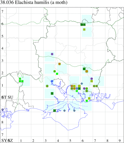 Common in a wide range of habitats throughout much of Britain, but not in the Highlands or Islands of Scotland; rare in Ireland. In Hampshire reasonably well-distributed in the south of the county, but very infrequent in the north and on the Isle of Wight; probably under-recorded. Wingspan 9-10 mm. The male is extremely similar to the small, poorly-marked upland form of