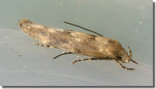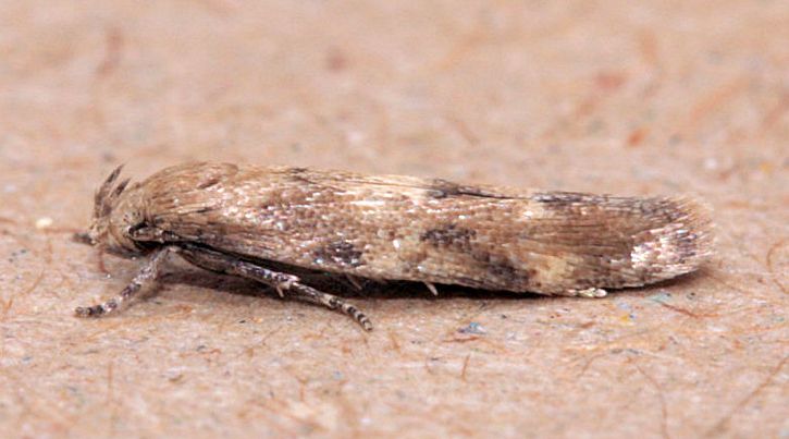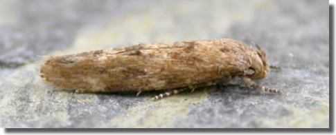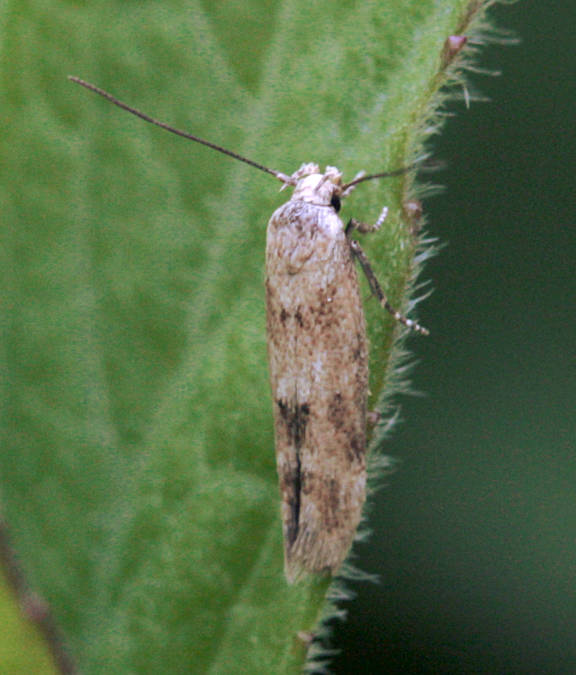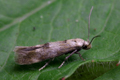 M. ochraceella by its grey hindwings and smaller wingspan (MBGBI Vol 4 part 1). Larva feeds on Great Willowherb.