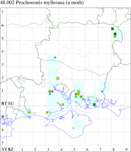 P. sehestediana, being known from scattered locations, historically the New Forest and Botley Wood; 2023 saw two new localities for the species in the north-east. Not recorded from the Isle of Wight since 1931. Wingspan 10-14 mm. Day-flying. Similar to