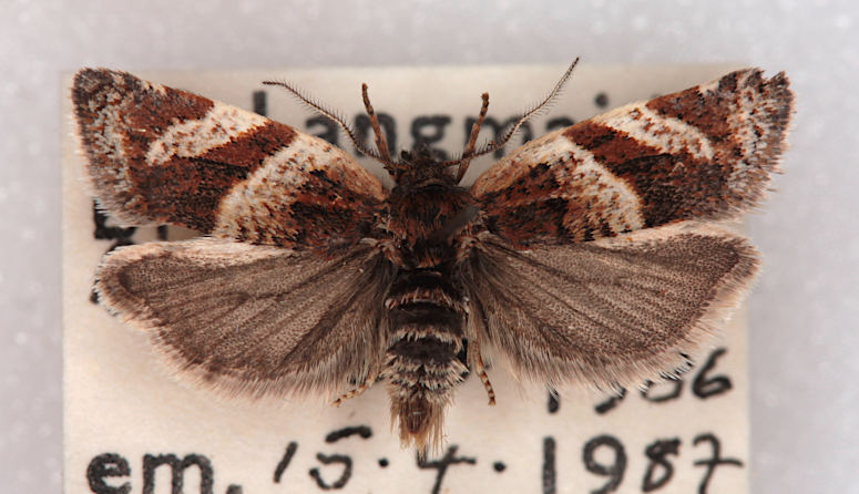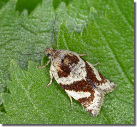 Nationally scarce (Nb) on moorland and heathland throughout much of northern England, Scotland and Ireland. Unlikely to be recorded in Hampshire or on the Isle of Wight. Wingspan 12-16 mm. The dark coloration of the fore- and hindwings, and the strongly pectinate antennae, are characteristic of the male; in the female the forewing is attenuated and the markings contrast with the greyish white ground colour [Bradley]. Larva feeds on Mint, Bog-myrtle, Cinquefoil, Common Valerian and Globeflower, living between flowers and leaves spun together with silk, over-wintering as a pupa.