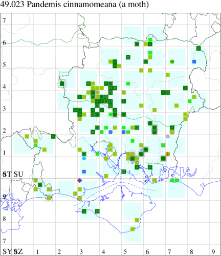 Common in woodland throughout much of England and Wales. In Hampshire widespread but rarely common, although frequent in Botley Wood. Probably under-recorded elsewhere, none more so than on the Isle of Wight, where it was not recorded until 2013. Wingspan 18-24 mm. Weakly marked specimens, especially those with drab coloration, may be confused with forms of