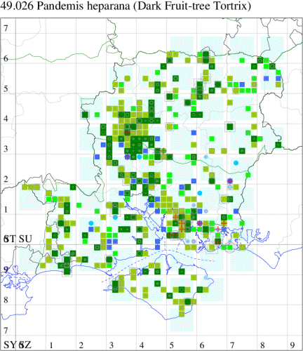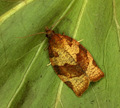 Common in oak woodland, orchards and gardens throughout the British Isles. Widespread and common in Hampshire and on the Isle of Wight. Wingspan 16-24 mm. Similar in general coloration to