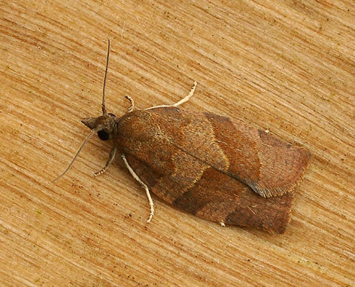 P. cerasana [Bradley]. Larva polyphagous on various trees and shrubs, including several species of fruit tree, on which it occasionally causes much damage, attacking flowers of crops such as apple, pear, plum and currant, otherwise often living within a spun or rolled leaf.
