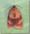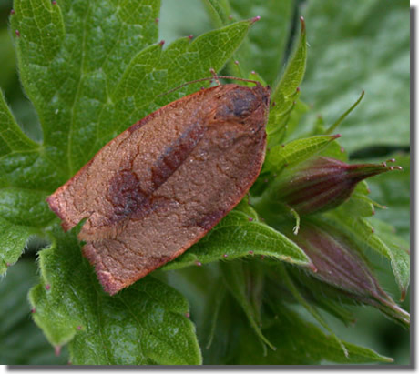 Common throughout much of Britain and southern Ireland. An adventive species, naturalised through accidental introduction in garden plants in southern England in the early 20th Century. In Hampshire and on the Isle of Wight it is now widespread, mainly in suburban areas. Wingspan male 15-17 mm, female 18-22 mm. Often seen flying by day in the vicinity of its foodplants. The bright orange coloration of the hindwing is characteristic of this species [Bradley]. Larva feeds on Cultivated Privet, Sea Buckthorn, Evergreen Spindle and other deciduous trees and shrubs, living within a spun or rolled leaf.