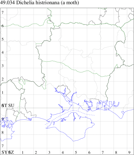 Recorded infrequently through accidental importation from eastern Europe. Not recorded in Hampshire or on the Isle of Wight to date. Wingspan 17-22 mm. Larva feeds on needles of Norway Spruce, living between needles spun together with silk.