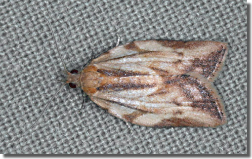 Common in gardens throughout much of the country. Thoroughly naturalised, through accidental introduction in garden plants, this native of Australia was first reported in Britain from Cornwall in 1936, it has since expanded its range across most of the country, and can be abundant where it occurs. Shows a marked preference for urban gardens, remaining relatively rare away from towns, and despite its common name, is neither light brown, nor particularly fond of apple! Widespread and common in Hampshire and on the Isle of Wight. Wingspan male 16-21 mm, female 17-25 mm. The male is usually distinguished by the abrupt division of the forewing medially into a pale basal area and darker apical area, and the female by its large size and relatively elongate forewing, often with greatly reduced markings [Bradley]. Larva polyphagous on a wide range of plants, including Evergreen Spindle, causing sufficient damage to fruit trees to be a serious pest in some areas.