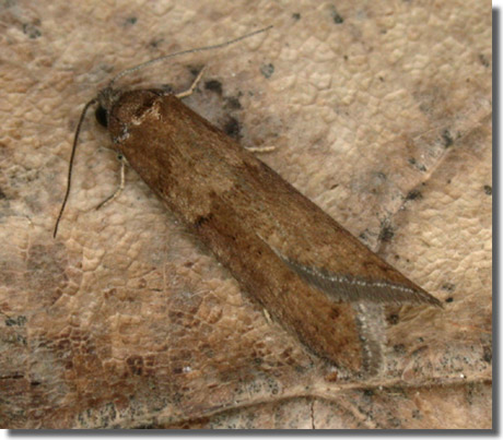 Common, in deciduous woodland, especially of oak, throughout Britain. In Hampshire, widely distributed and relatively common in oak woodland, appearing in 2009 in considerable numbers, including in many gardens well away from oak woodland. Likely to be under-recorded on the Isle of Wight with few recent records. Wingspan 19-23mm. One of the earliest Tortricids to emerge in Spring and unlikely to be confused with hibernating Tortricids which may be on the wing in early spring [Bradley]. Larva feeds on Oak, Hornbeam, Hazel, Hawthorn, Blackthorn, Lime and Birch, living between leaves spun together with silk, and over-wintering as a pupa.