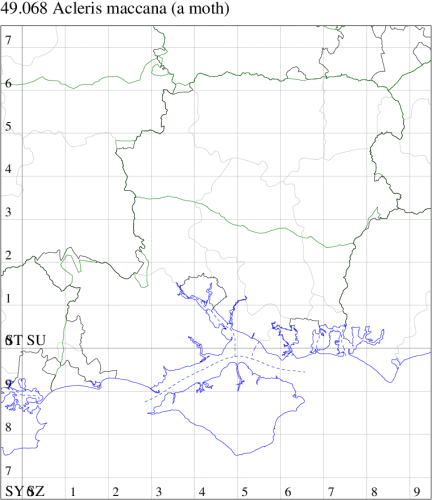 Nationally scarce (Na) in woodland and on moorland in parts of the Scottish Highlands. Unlikely to be recorded in Hampshire or on the Isle of Wight. Wingspan 19-25 mm. This species differs from