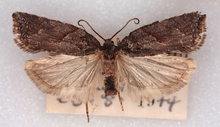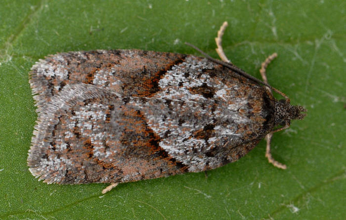 A. hastiana the wing is broader basally, with the costa rough-scaled, strongly arched basally and shallowly concave beyond the middle [Bradley]. Larva feeds on Bilberry, Bog Bilberry and Bog-myrtle, living within a spun or rolled leaf.