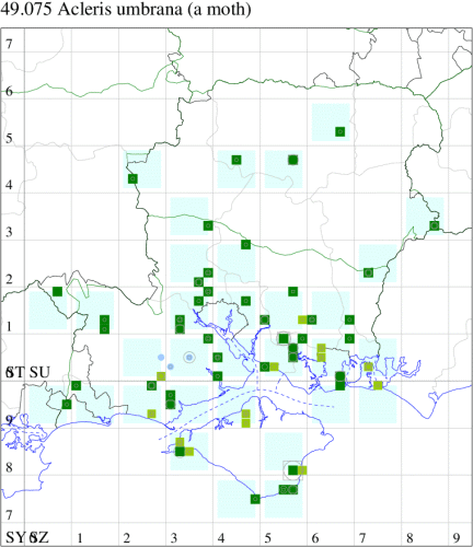 Nationally scarce (Na) in woodland, fens and marshes in parts of England and Wales. In Hampshire this scarce and elusive species has been knocked out of old hawthorns in the New Forest in the past, but nothing has been heard of it since the 1930s, until there was a migration event in early January 2013 when a number were trapped across southern England, during which an individual turned up in Pennington. In subsequent years the species has become increasingly frequent and appearances in the two counties are now expected annually (reported new for North Hampshire in 2022) and now probably established at low levels as a resident. Wingspan 18-23 mm. This species is similar to certain forms of