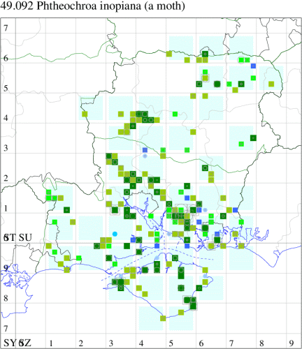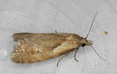 Local in dry pastures, fens and marshes, and on river-banks and other damp areas throughout England and Wales. Reasonably common in Hampshire, with the south-east quarter of the county responsible for more than two thirds of the total records on the county database, and with no indication of any significant decline in numbers, but very rare on the Isle of Wight. Wingspan 17-22 mm. The relatively large size of this species and the obscure markings and drab coloration of the forewing are characteristic [Bradley]. Larva feeds within roots of Common Fleabane and Field Wormwood, living within a silken tube or tent.