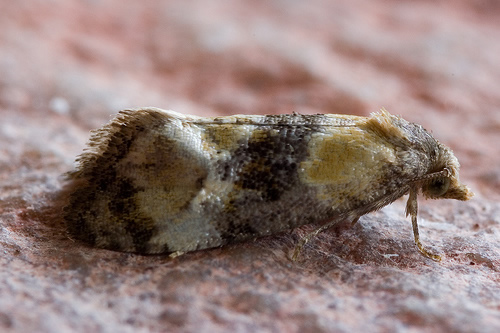 Vulnerable (proposed as a future Red Data Book species) in woodland and scrubland in parts of England and Wales. Not recorded in Hampshire or on the Isle of Wight to date. Wingspan 13-15 mm. Distinguished from