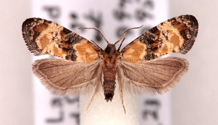 P. gilvicomana by the comparatively clear ground colour in the postmedian area of the forewing [Bradley]. Larva feeds within flowers of Goldenrod.
