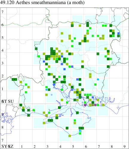 Common in waste ground, shingle beaches and chalk downland throughout much of Britain. In Hampshire widespread and common but probably under-recorded, the extent of known records correlating with those areas in which the recording effort is concentrated. On the Isle of Wight, seemingly rather uncommon. Wingspan 12-17 mm. Readily distinguished from