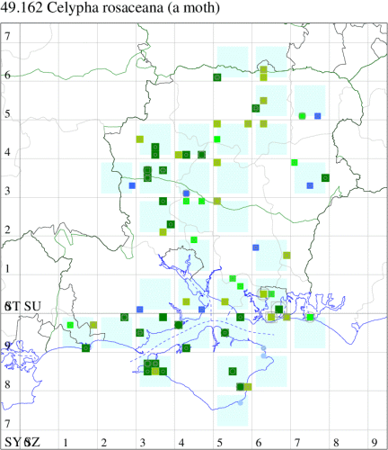 Local in rough pastures and grassland in parts of southern England, southern Wales and southern Ireland. In Hampshire and on the Isle of Wight records are widely, but very sparsely, distributed throughout. Wingspan 15-19 mm. The overall pink or pinkish buff general coloration of the forewing distinguishes this species from