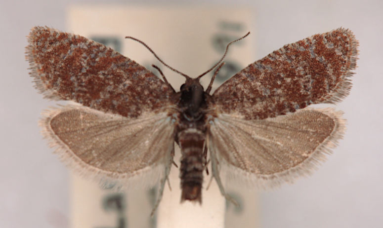 O. mygindiana is purplish brown, and by the more uniform reddish purple ground coloration and distinctly transverse striations of the forewing [Bradley]. Larva feeds on Bearberry, living within a spun or rolled leaf.