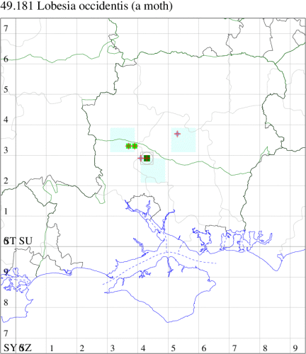 Vulnerable (proposed as a future Red Data Book species) in woodland, saltmarshes and on sandy beaches in parts of southern England. In Hampshire recorded in the past from Farley Mount and Crab Wood in the south, and from Micheldever Wood in the north, but recorded recently only from woodland north of Little Somborne. Not recorded from the Isle of Wight to date. Wingspan 12-14 mm. The generally dark brown mixed with yellow coloration of the forewing, the moderately conspicuous yellowish dorsal blotch and the dark hindwing distinguish this from other Lobesia species [Bradley]. Larva feeds within seeds of Wood Spurge and Sea Spurge, over-wintering as a pupa.
