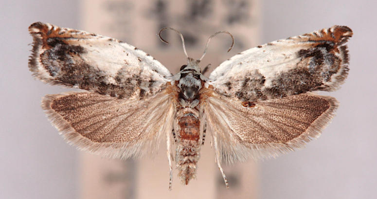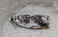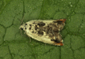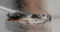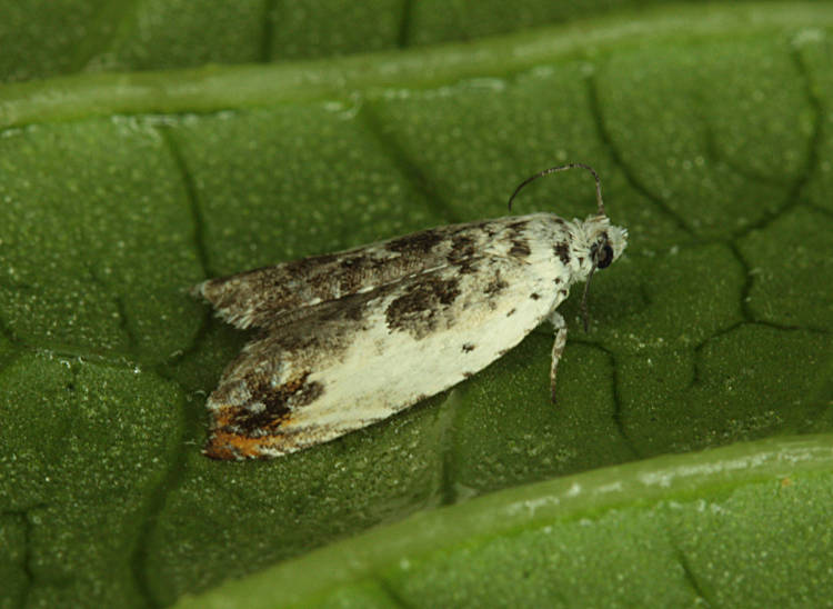 Local in woodland, gardens, orchards and parks throughout much of Britain. In Hampshire local in scattered locations, in the south from Mottisfont to Emer Bog, Botley Wood and Wickham Common in the north in Harewood Forest, Pamber Forest, Bartley Heath, Eelmoor Marsh and Fleet Pond. Two records in 2022 were the first for many decades from the Isle of Wight. Wingspan 13-18 mm. The contrasting white costal and grey-black dorsal areas of the forewing, together with the ferruginous apical area and the submetallic blue-grey ocellar area, are characteristic [Bradley]. Larva feeds on Aspen, living within a spun or rolled leaf.