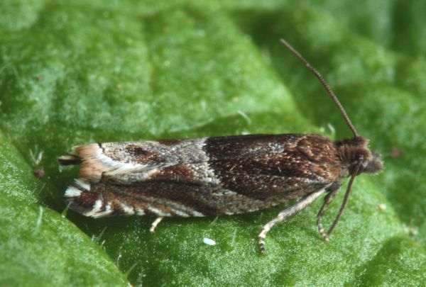 A. obtusana, but differs in the dull brown general coloration of the forewing and the acutely angled apex [Bradley]. Larva feeds on Salad Burnet, Wild Strawberry, Cinquefoil and Wild Thyme, living within a spun or rolled leaf, and over-wintering either as a pupa or full-grown larva.