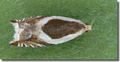 A. paludana by the darker general coloration of the forewing and the presence of never more than a single black dot at the base of the cilia below the subapical dash [Bradley]. Larva feeds on various species of Vetch, Vetchling and Clover, living between leaves spun together with silk, and over-wintering in a cocoon.