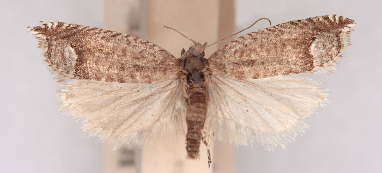 Vulnerable (proposed as a future Red Data Book species) in scrub and birch woodland in parts of eastern Scotland. Not recorded in Hampshire or on the Isle of Wight to date. Wingspan 11-15 mm. The strongly falcate forewing and its grey general appearance and prominent, contrasting greyish white ocellar patch distinguish A. tineana from other Ancylid species [Bradley]. Larva feeds on Aspen, living within a spun or rolled leaf, over-wintering as a small larva.