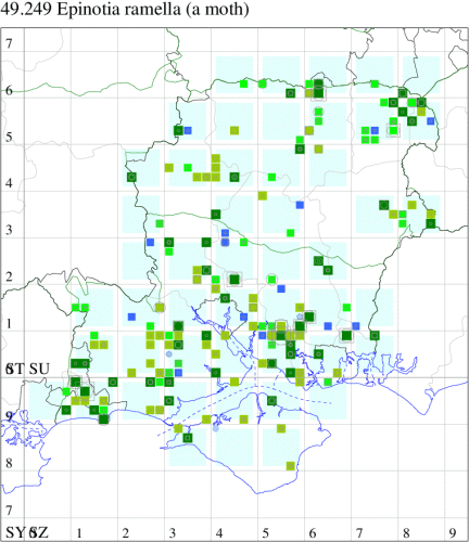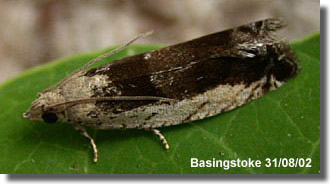 Common in birch woodland throughout much of the British Isles. In Hampshire widespread and common throughout. On the Isle of Wight, the only recent record is of one in Combley Great Wood in October 2005. Wingspan 13-16 mm. Distinguished from
