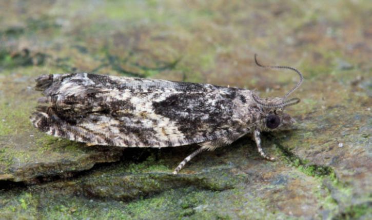 Epinotia cinereana has the blackish or reddish blotches in the forewing absent and gives an overall greyish impression showing blackish streaks in the forewing. The larvae are said to feed between spun leaves of Aspen