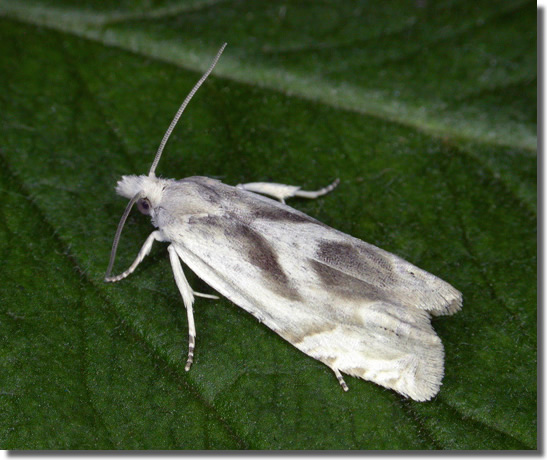 E. lacteana and further distinguished by the lack of a basal patch in the forewing and the presence of a semi-elliptical postmedial patch on the dorsum; well-marked specimens are reminiscent of