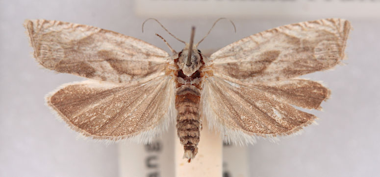 E. pupillana but may be distinguished by the subbasal fascia, which is inward-oblique from the middle to the dorsum, and the poorly developed ocellus [Bradley]. Larva feeds on stems of Mugwort and Wormwood.