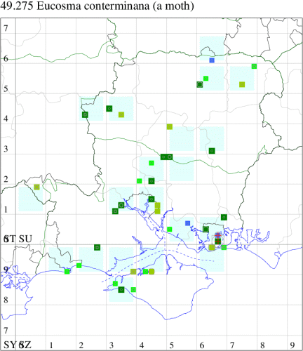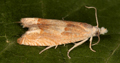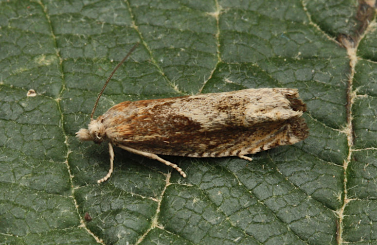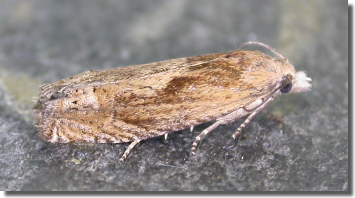 Local in dry open areas in parts of southern England. In Hampshire first recorded in the Itchen Valley in 1976, and increasing in the south, where associated with an increase in the foodplant, Prickly Lettuce, and now well-established in the Portsmouth and Southsea area. Has recently started to appear elsewhere in the county (1999 in vice-county 12) and on the Isle of Wight (2004). Wingspan 15-19 mm. The pale yellowish brown general coloration of the forewing and the relatively conspicuous medio-dorsal blotch of light ground colour are characteristic [Bradley]. Larva feeds on flowerheads of Prickly Lettuce, Garden Lettuce and Great Lettuce, over-wintering in a cocoon.