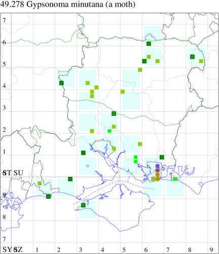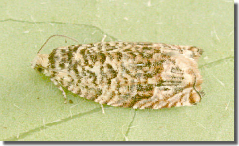 G. minutana is smaller and has paler forewing coloration and lacks the white interspaces between the costal strigulae, while the hindwing is paler and has greyish instead of white cilia [Bradley]. Larva feeds on Black Poplar, White Poplar and Aspen, living between leaves spun together with silk.