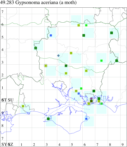 Local in woodland, gardens, orchards and parks throughout much of southern Britain. In Hampshire locally common amongst large poplars, mostly in the south-east, with only occasional scattered records elsewhere, and none on the Isle of Wight in recent years. Wingspan 13-15 mm. Distinguished from