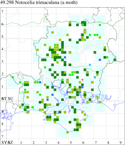 Common in hedgerows, gardens and woodland throughout much of the British Isles. In Hampshire widespread but nowhere common, although the larva feeds on hawthorn, most records are at light. There have been no recent records from the Isle of Wight. Wingspan 15-18 mm. This is one of three closely related and difficult to separate species (see