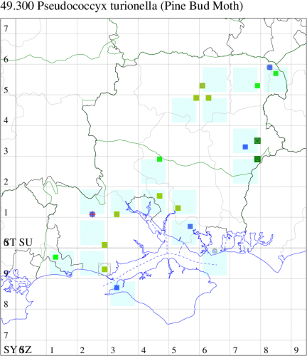 | Stoney Cross, NF (SU21) | 30/03/1991 | one | J R Langmaid, B Goater | Larval |