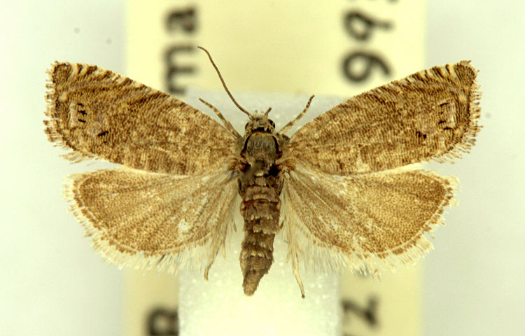 Nationally scarce (Nb) on dry pastures and waste ground in parts of England and Wales. Not recorded in Hampshire or on the Isle of Wight to date. Wingspan 10-13 mm. The dense, pale ochreous irroration and extensive dark grey strigulation of the forewing are characteristic [Bradley]. Larva feeds on Common Restharrow, living between shoots spun together with silk.