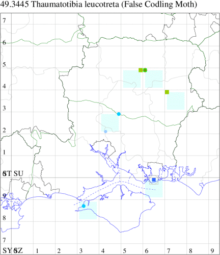 Recorded infrequently through accidental importation in citrus fruit, usually oranges, from Africa. In Hampshire first recorded at light at Southsea on 10 August 1983, with a second at the same site on 11 August 1995; first recorded on the Isle of Wight on 29 September 1989. Wingspan male 15-16 mm, female 19-20 mm. Larva is an important pest of citrus and other fruits, including avocado pear and guava and maize cobs, cotton bolls, castor-oil seeds and tea seeds and It is unlikely that the species can survive outside the tropics and subtropics [Bradley].