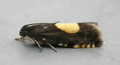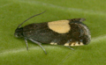 P. regiana in having the medio-dorsal blotch of the forewing pale yellow and subquadrate, its outer edge nearly straight to dorsum near the tornus, and the costal strigulae interspersed with thick wedges of pale yellow ground colour [Bradley]. Larva feeds within seeds of Field Maple, over-wintering as a pupa in a cocoon.