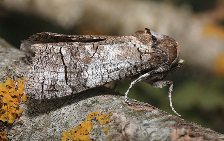 A UK BAP species in fens, marshes, river-banks, damp areas, golf courses, heaths and woodland edges in parts of the British Isles, less numerous in the north. In Hampshire and on the Isle of Wight mainly confined to the New Forest, with scattered records elsewhere. Wingspan male 68-84 mm, female 88-96 mm. The larvae feed internally in living wood or pith of a range of broadleaved trees especially those in damp areas, including sallows, willow and poplars, Ash, birches, oaks, Alder, Apple and other fruit trees, and take several years to mature. Sometimes trees in which the Goat Moth is present will be obvious, with multiple entrance holes indicating larval workings.