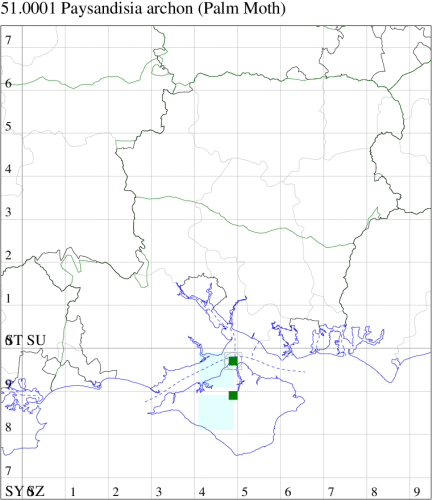 Recorded infrequently through accidental importation in palm trees. Originally a native of Argentina, the species has a long history of establishment in Europe, finally becoming widespread in France and Spain in the mid 1990s. On 13 August 2002, first recorded in Britain in warm sunny weather at Bosham, West Sussex; subsequently four live adults were found indoors in May 2007 in an office building in Kent, having emerged from a 5m tall Canary Island Date Palm. Two individuals were reported from the Isle of Wight in 2021. Wingspan 90-110 mm. Larva feeds within stems and trunks of palm trees, over-wintering once as a larva and once as a pupa.