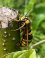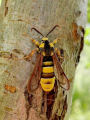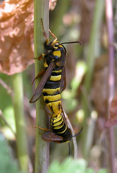 Lunar Hornet Moth by the yellow head and tegulae.