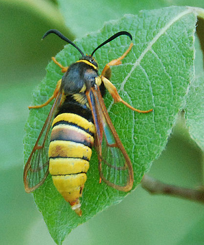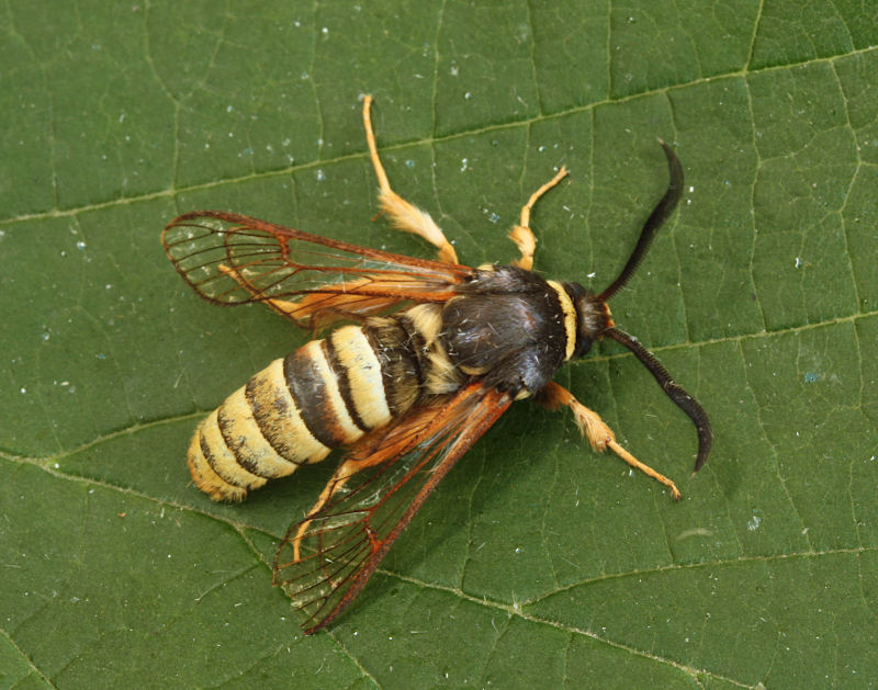Common in fens, woodland, heaths, moorland and hedgerows throughout much of the British Isles, with most records in central and southern England. In Hampshire fairly well distributed, but apparently rare in the central half of northern Hampshire and the eastern quarter of southern Hampshire; also sparsely distributed on the Isle of Wight. Wingspan 32-42 mm. Day-flying. Mainly recorded in the larval form, but the early stages are not easy to find during the winter months; attempts to synthesise an artificial pheromone have so far proved only partially successful. Larva feeds within wood of Sallow, Poplar and Willow, over-wintering twice.