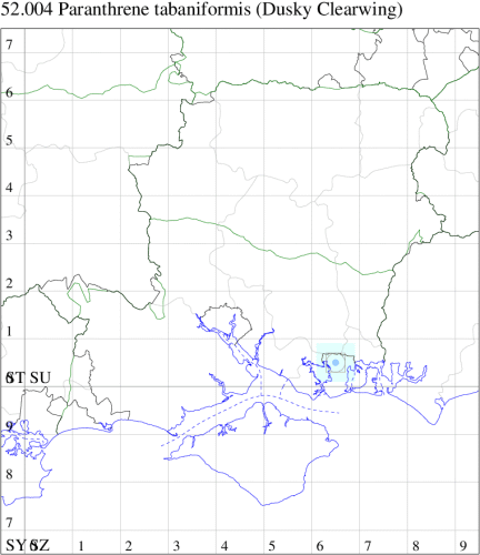 Formerly considered extinct in the British Isles, having, until 2021, not been recorded since 1924, from Berkshire. However, in that year, P. tabaniformis was rediscovered at a site in Warwickshire, and in 2023 it was found in at least three new counties, from Cambridgeshire, Bedfordshire and Suffolk. All were to the TAB pheromone lure and it is almost certainly going to be found to be more widespread. Whether this perceived spread is real, or that the species has been present undiscovered for want of searching, is unclear, but the author feels that the latter is more likely.