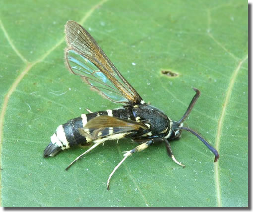 A species of broad-leaved woodland where Aspen and poplar grows, the larvae feeding within the trunk. In Hampshire there is one old record, from Cosham in 1909, but not recorded from the Isle of Wight. Wingspan 26-34 mm. Day-flying. On the continent, feeding signs of the early stages may be sought during the winter months, but the advent of synthetic pheromone lures has made trapping the male moth a more reliable and easier method of monitoring for presence.
