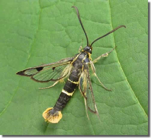 A rare Red Data Book species, a species of conservation concern under the UK Biodiversity Action Plan. Restricted to birch woodland in Perthshire and Sutherland; recorded in recent years at Cannock Chase, Staffordshire, and in Sherwood Forest, Nottinghamshire. Not recorded in Hampshire or on the Isle of Wight to date. Wingspan 24-35 mm. Day-flying, the early stages may be sought during the winter months, but synthetic pheromone lures are used to attract males nowadays, and this has led to a marked increase in records of this species in recent years. Larva feeds within bark of Silver Birch and Downy Birch, over-wintering three times.