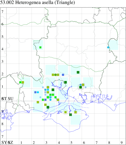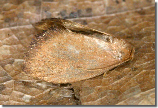 A rare Red Data Book species in oak and beech woodland. There are post-1980 records from Essex, Kent, East Sussex, Hampshire, south Wiltshire, Devon and Cornwall, but the species is very local and scarce throughout its range. In Hampshire most records come from the New Forest where it is now scarce, although annual on Wickham Common: some signs that there has been a recent upturn in sightings in recent years, and it was recorded from the Isle of Wight for the first time in 2015. Wingspan male 14-19 mm, female 16-22 mm. Larva feeds on Oak and Beech, over-wintering in a cocoon.